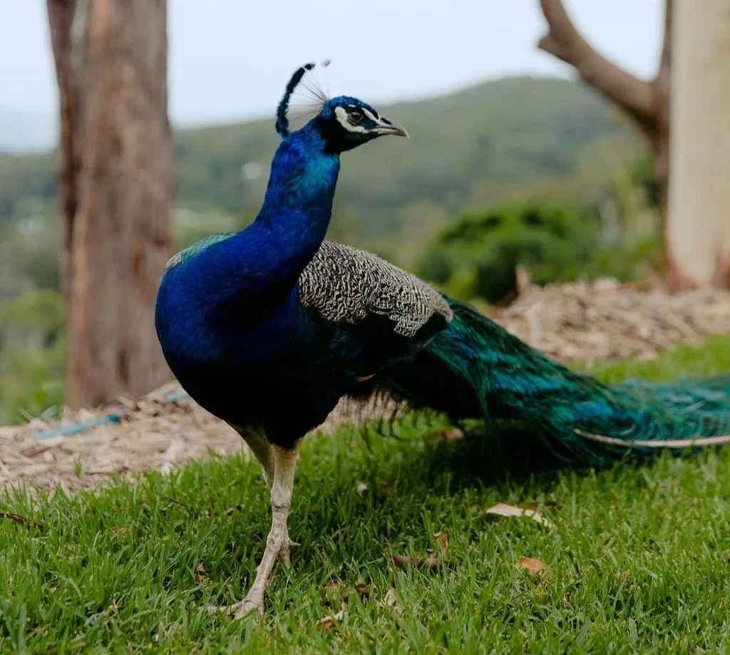 Peacock O’Clock was named after Bub (pictured above) who was our friendly peacock neighbour from St Bernards Pub next door for over 20 years. Sadly, Bub passed away in 2025 after a tragic accident. Tony, the owner of St Bernards Pub, was so heart broken he adopted three new peacocks, Harold, Colin and Cranberry.